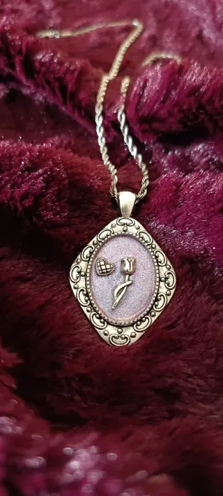 Collana Vintage Cammeo Rosa e Cuore