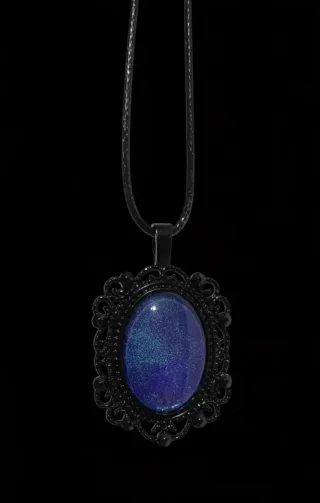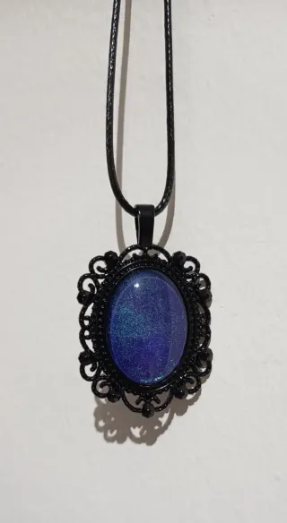 Indossa un frammento di cielo stellato. ✨ Lasciati rapire dai riflessi profondi di questa collana fatta a mano, dove il blu notte incontra polvere di stelle cangiante. Incastonato in una cornice barocca total black, questo cammeo sembra custodire un'intera galassia segreta, pronta a brillare sul tuo petto. Un gioiello nato per chi non smette mai di guardare verso l'alto e desidera portare con sé un pizzico di magia ogni giorno. L'Essenza: Un portale verso l'infinito racchiuso in un design Dark Chic. Dettagli: Lavorazione artigianale, cabochon effetto profondo. Stile: Perfetta per sognatrici, amanti del Gothic Elegance 🌹