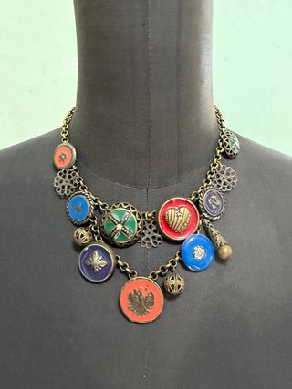 Collana bronzo anni '70 ciondoli smaltati