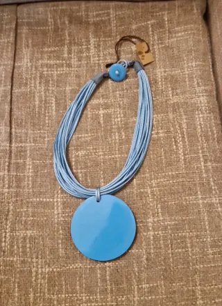 - Ciondolo con design a cerchi concentrici. - Cordino multiplo azzurro.