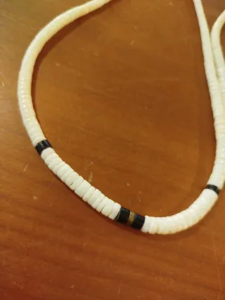 Collana vintage composta da tante piccole perline. - Perline bianche. - Dettagli neri e dorati.