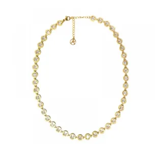 Elegante collana in acciaio inossidabile, con finitura dorata e impreziosita da zirconi. - Design con zirconi incastonati. - Chiusura regolabile per una vestibilità perfetta. - Materiale: Acciaio inossidabile.