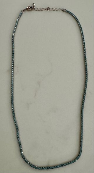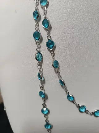 Elegante collana lunga circa 1 metro, impreziosita da pietre color turchese. - Lunghezza: 1 metro - Dettagli: pietre color turchese incastonate in una montatura color argento.