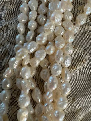 Collana in perle di riso dí acqua dolce vintage con chiusura in argento molto bella elegante multifili. Usata un paio di volte. Il fermaglio della chiusura presenta gancetto per chiusura di sicurezza. Prezzo trattabile solo dí pochi euro.