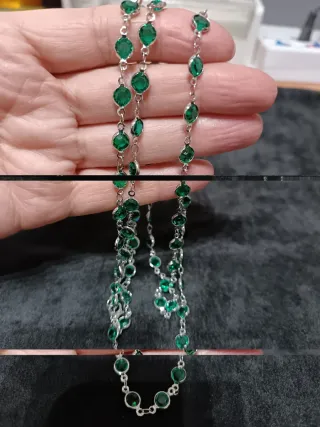 Elegante collana con pietre verdi incastonate in argento. - Design raffinato con pietre a vista. - Catena sottile e luminosa.