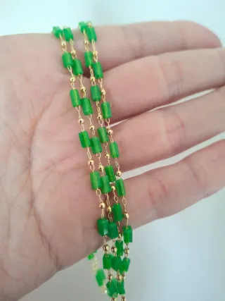 Collana oro con perline verdi lunga 1metro