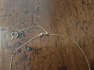 Collana con pendente spilla con zirconi bianchi a taglio diamante incastonato. Laminato in oro 18kt di58,5% d'oro con timbro 585. Ci sono anche anello vedi da me al vendita.