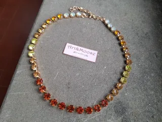 Elegante collana con cristalli luminosi che sfumano dal giallo all'arancione. - Montatura color oro. - Cristalli sfaccettati. - Design a cascata di colori.