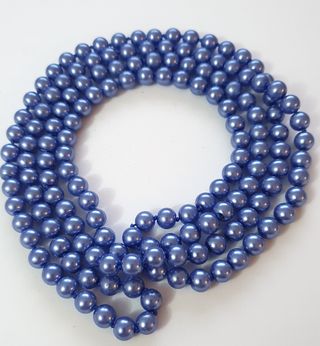 Bellissima collana vintage di perle di pregio in vetro da 6 mm, colore blu ardesia. Perle rotonde e lucide. Perfetta per un look elegante e raffinato. Ideale come regalo con scatola quadrata blu inclusa. Lunghezza 62 cm per fare un doppio giro