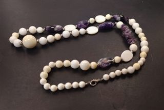 Bellissima collana lunga con perle di giada bianca e ametista. Design elegante e raffinato. Perfetta per ogni occasione. Ottime condizioni come da foto