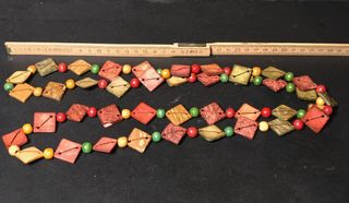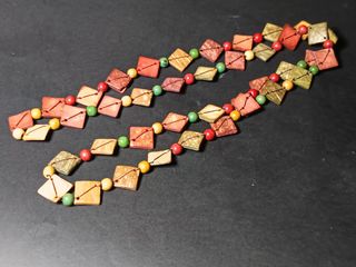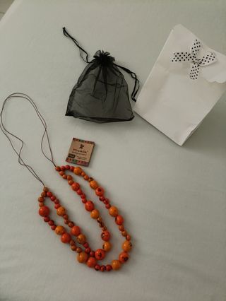 Bellissima collana artigianale Pacha Uta, realizzata con perline di legno. - Due fili di perline rotonde. - Colori caldi e vivaci. - Chiusura con cordino in tinta.