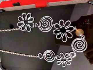 Bellissima collana artigianale realizzata in alluminio ipoallergenico. - Design elegante e originale. - Composta da elementi a spirale e fiori. - Unica perline color borgogna.