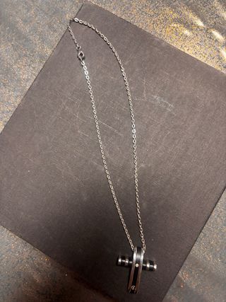 Bellissima collana da uomo in acciaio, con ciondolo a forma di croce. - Materiale: acciaio inox - Colore: nero e argento - Ciondolo a forma di croce