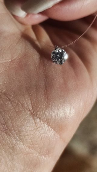 Delicata collana con pendente in moissanite. - Pietra centrale scintillante. Da 0.5 di caratura Con 4 artigli - Montatura Lenza di pesce