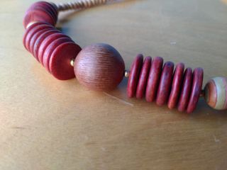 Collana girocollo con perle in legno. Collana girocollo in legno a dischi rossi, in ottime condizioni. Chiusura a vite. Misura 46 cm aperta. Le foto descrivono esattamente il prodotto e sono parte integrante della descrizione. Vedi il mio profilo per altre collane ed accessori per la persona. - Perle a forma di disco color rosso. - Perle tonde in legno naturale e colorato. - Chiusura a calamita.