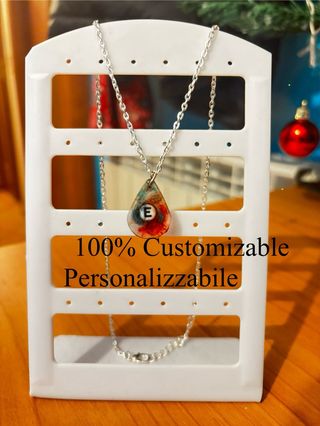 Collana con ciondolo a forma di goccia, personalizzabile con la lettera E e con i colori o brillantini a scelta il prezzo è da concordare - Ciondolo con resina e dettagli colorati. - Catena in acciaio inossidabile colore argento argento