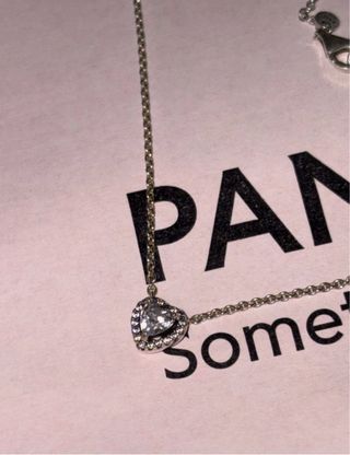 Delicata collana Pandora con pendente a forma di cuore. - Design a cuore scintillante. - Catena in argento 925 - Incantevole idea regalo.