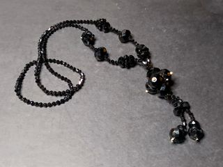 Bellissima collana lunga nera con cristalli. - Elegante e raffinata. - Perfetta per occasioni speciali. - Un gioiello unico ed originale.