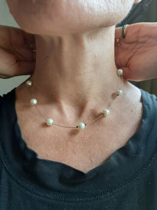 Collana in filo metallico con perline bianche