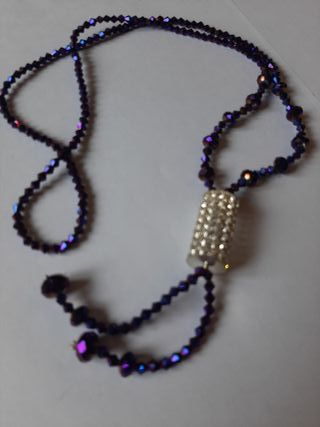 Collana lunga con pietre viola, chiusura con gancetto.