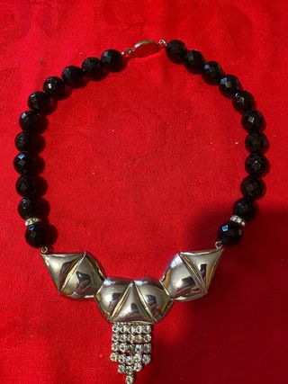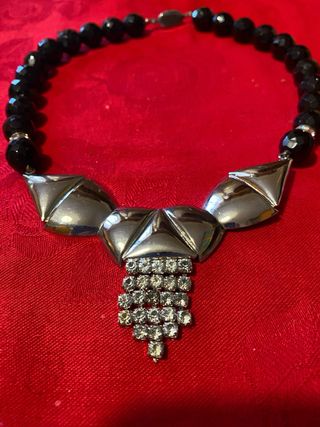 Collana girocollo vintage anni 80 nero e argento