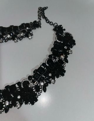 Vendo accessori gioiello nero con strass e decorazioni brillanti, come da foto. Design elegante e scenografico, ideale come collana o bracciale decorativo per outfit particolari, serate eleganti o cerimonie. Posso valutare anche vendita singola