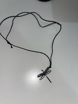 Vendo collana con ciondolo a forma di libellula, impreziosito da piccoli dettagli luminosi sulle ali. Design delicato ma originale, perfetta da indossare tutti i giorni o per dare un tocco particolare ai tuoi outfit. ✔️ Ciondolo a forma di libellula ✔️ Cordino nero regolabile con nodi scorrevoli ✔️ Leggera e comoda da indossare ✔️ Mai usata, ottime condizioni Materiale: metallo (bigiotteria) e cordino in cotone/sintetico.