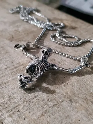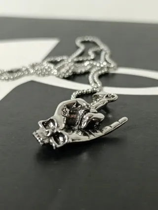 Collana con ciondolo a forma di scheletro. - Design dettagliato. - Materiale metallico lucido.
