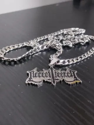 Collana con un ciondolo - Ciondolo in metallo argentato. - Catena a maglie spesse.