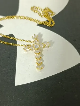 Elegante collana con pendente a forma di croce, impreziosita da zirconi scintillanti. - Design raffinato e luminoso. - Catena sottile e delicata.