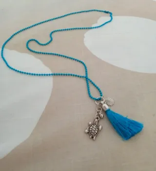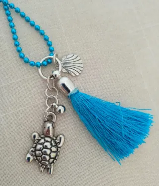 Catenina e nappina azzurri Charm tartaruga e conchiglia argentati