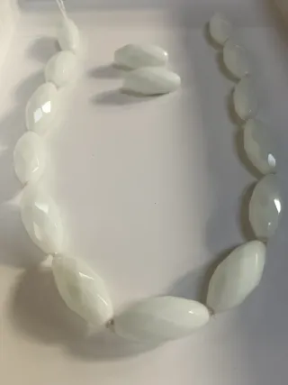 Elegante collana realizzata con pietre dure sfaccettate e perle. - Pietre dure di colore verde e bianco. - Chiusura a moschettone. - Design unico e raffinato.