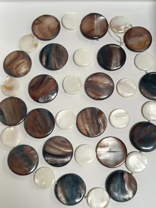 Collana realizzata con perle di madreperla naturale. - Perle di forma rotonda piatte. - Alternanza di perle marroni e bianche e argento .