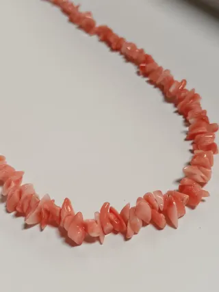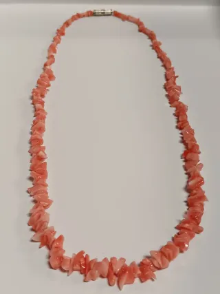 Collana realizzata con autentico corallo naturale. Le pietre irregolari creano un design unico e vibrante. - Corallo naturale irregolare. - Chiusura a vite argentata.