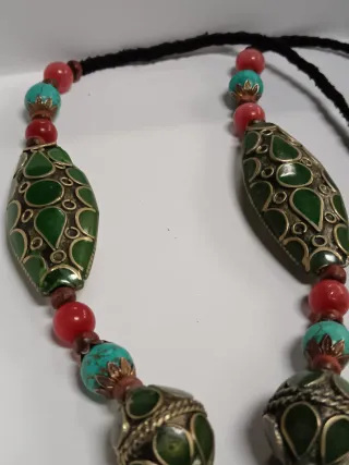 Collana etnica con pietre verdi e monili ottonati ottime condizioni