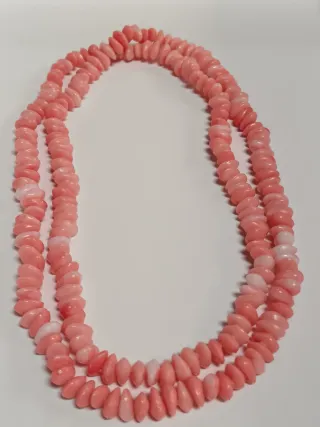Collana con perle rosa e dettagli color pesca. Vintage, mai usata Cm 73 circa - Chiusura a moschettone. - Design elegante e raffinato.
