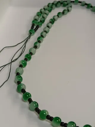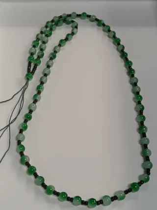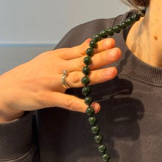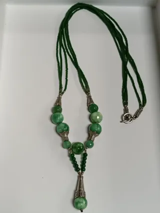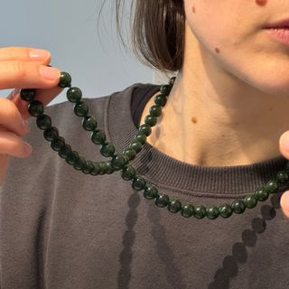 Elegante collana vintage con perle in giada. Un accessorio unico che aggiunge un tocco di raffinatezza. - Perle di giada di colore verde intenso. - Design classico e senza tempo.
