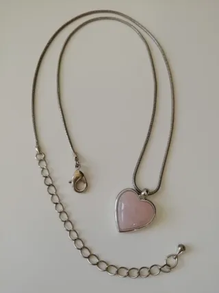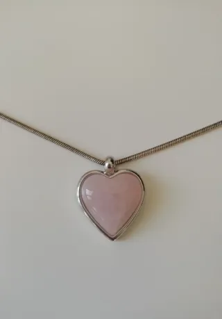 Delicata collana con un ciondolo a forma di cuore. - Ciondolo a forma di cuore. - Pietra color rosa. - Catena color argento.