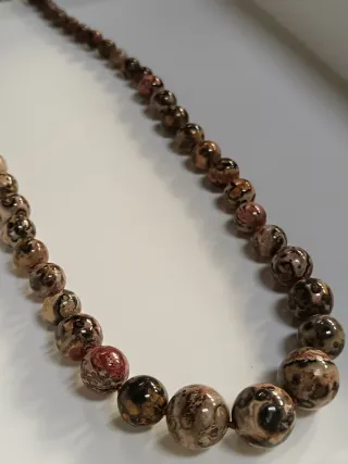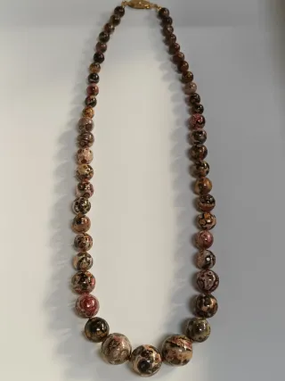 Bellissima collana realizzata con pietre dure naturali Diaspro. Ogni pietra presenta sfumature uniche che creano un effetto visivo affascinante. Chiusura dorata