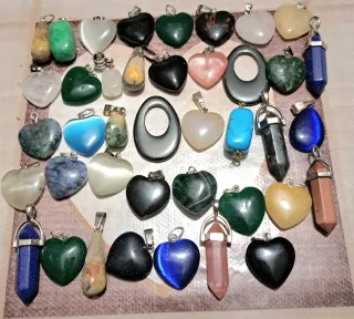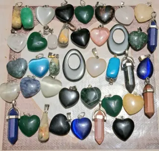 Lotto di pendenti in pietre dure assortite, ognuno con un fascino unico.sono 15 tutti con pietre dure - Diverse pietre naturali. - Montatura in metallo. - Ideali per creazioni di gioielli.