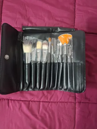 Set di 10 pennelli per il trucco, ideali per diverse applicazioni. - Custodia in ecopelle nera. - Chiusura con bottone a pressione - Cerniera interna