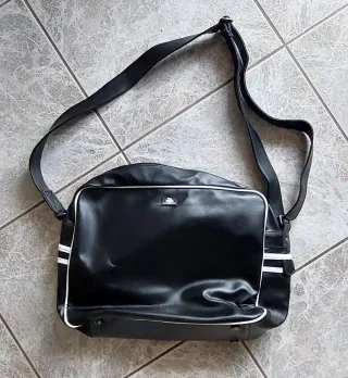 Borsa in similpelle nera, elegante e capiente. - Texture effetto coccodrillo. - Manici superiori. - Tracolla regolabile e removibile. - Chiusura con bottone a pressione dorato.