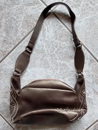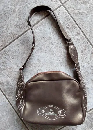 Elegante borsetta a spalla Egon Furstenberg. - Materiale effetto pelle. - Dettagli con borchie e strass. - Logo inciso sul davanti.