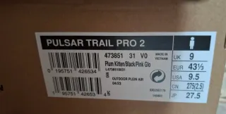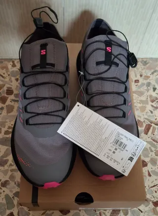 Scarpe da trail running Salomon Pulsar Trail Pro 2. - Colore grigio con dettagli rosa. - Taglia 42.5.