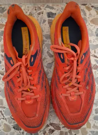 Scarpe da trail running Hoka Speedgoat 5, ideali per affrontare ogni tipo de terreno. - Tomaia in mesh traspirante. - Intersuola ammortizzata per un comfort duraturo. - Suola in gomma Vibram® per un'ottima aderenza.