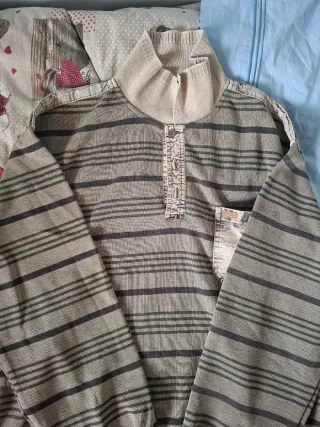 Giacca sportiva da uomo in cotone, dal taglio moderno - Design a collo alto con chiusura a bottone. - Due tasche sul petto con patta. - Due tasche laterali. - Chiusura centrale con bottoni automatici spacchetti dietro fodera con disegni in contrasto 100% cotone color grigio taschino interno toppe sulle maniche in lana in contrasto usata pochissimo molto ben tenuta