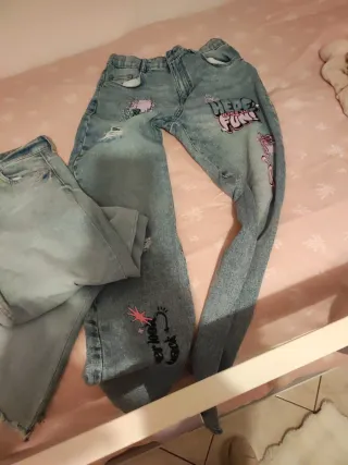 Jeans a vita alta per ragazza, modello a zampa. - Orlo sfrangiato - Dettagli strappati - Patch applicata