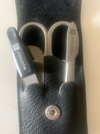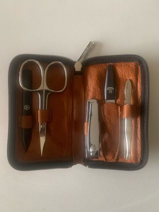 Set de manicura de la marca Wusthof. - Funda de piel. - Incluye tijeras, cortaúñas, pinzas y lima.