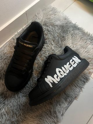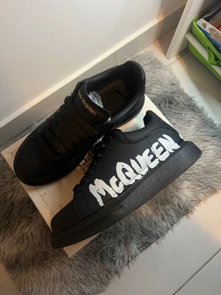 Sneakers Alexander McQueen in pelle nera con dettagli bianchi. - Logo McQueen stampato sul lato. - Logo Alexander McQueen sulla linguetta.