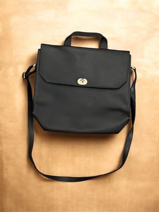 Borsa O Bag in ecopelle nera, con chiusura a girello dorata e manico superiore. Dotata anche di tracolla regolabile. - Materiale: Ecopelle - Colore: Nero - Dettagli metallici: Dorati - Chiusura: A girello